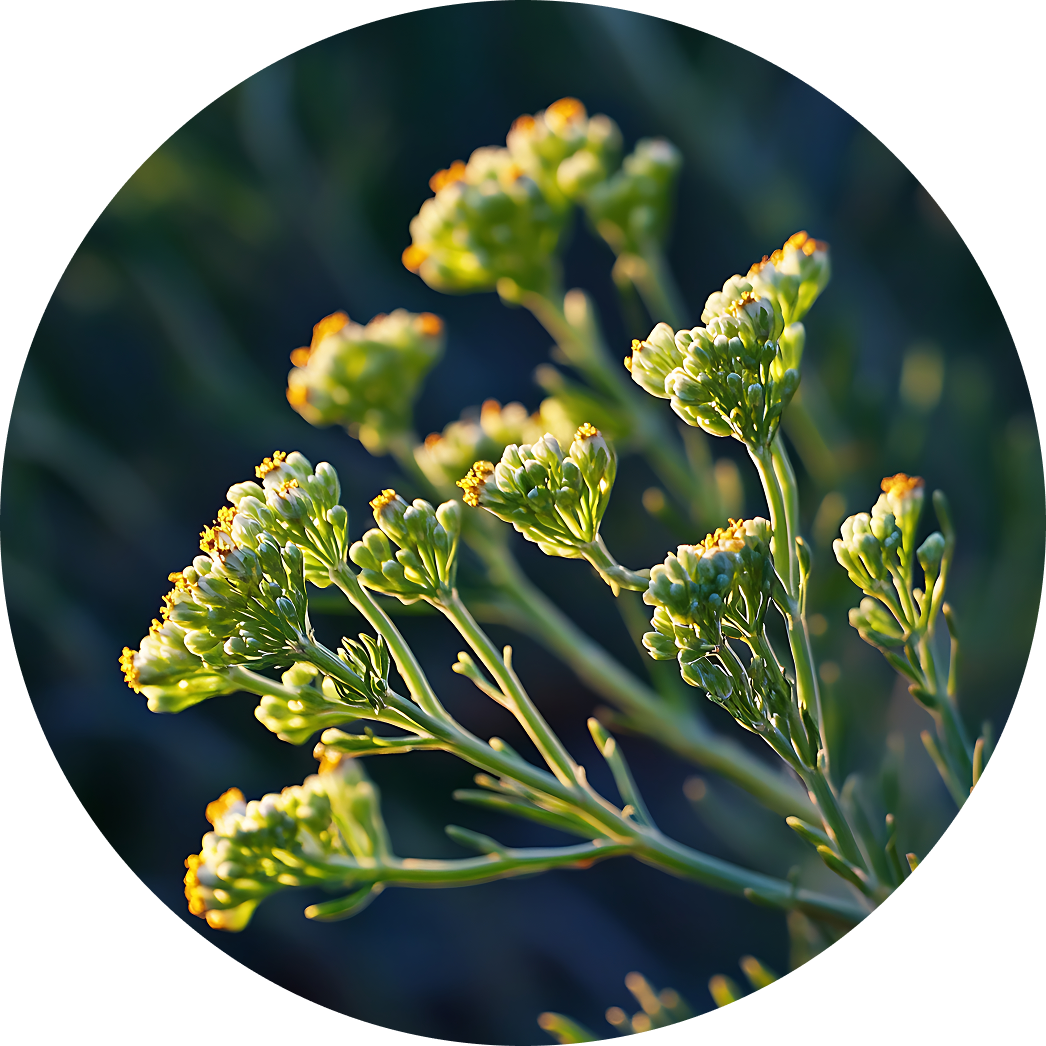Derived from the rare Genepi flower, this alpine extract soothes and defends. It reduces redness, protects from environmental stress, and restores balance to sensitive or reactive skin. A gentle yet powerful botanical that promotes long-term comfort and clarity.